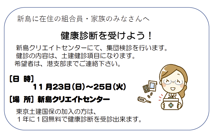 島内では仕事量が少なく、都内に出稼ぎに行く仲間の話、元請けとして新築・改築工事をしているが人手が足らないことなど、仲間の現状も聞き取ることができました。あわせて未加入者情報も掴み目標超過の可能性も出ています。